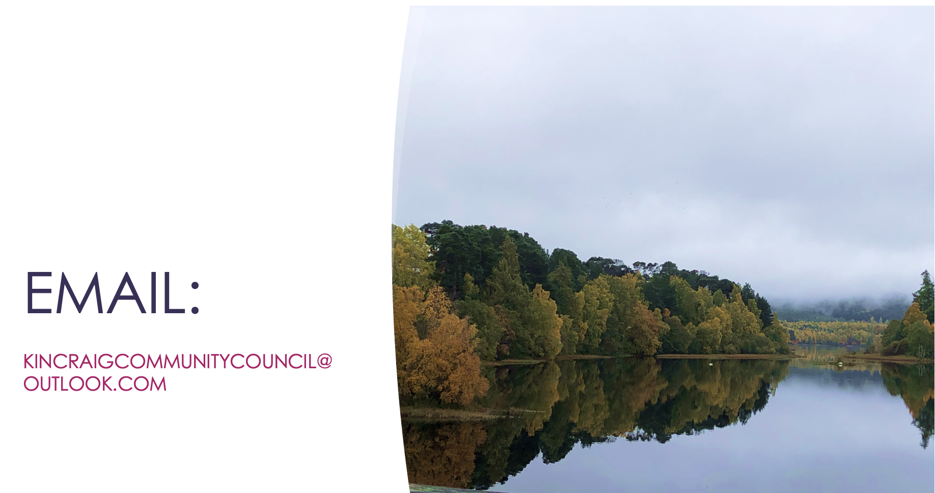 To contact the Community Council; Please email us: kincraigcommunitycouncil@outlook.com